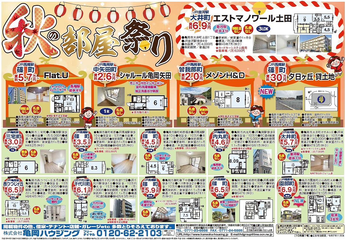 秋ですね~!涼しくなりましたね~!お祭りですね~!わっしょい!!🏢🏢🏢お引越しにはいい季節ですよ!土地・店舗・ガレージ・ワンルーム・ファミリー等物件取り揃えております!ご来店お待ちしております!🏢🏢🏢
