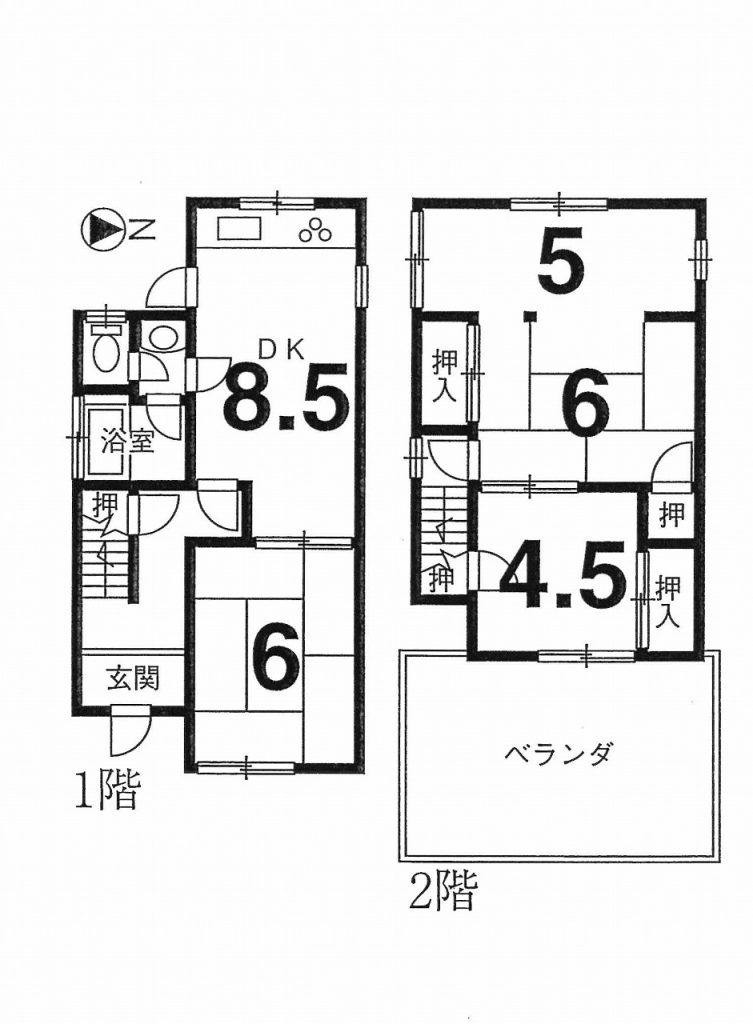 間取内容 | LDK 8.5畳 和室 6畳 和室 6畳 洋室 4.5畳 | ||