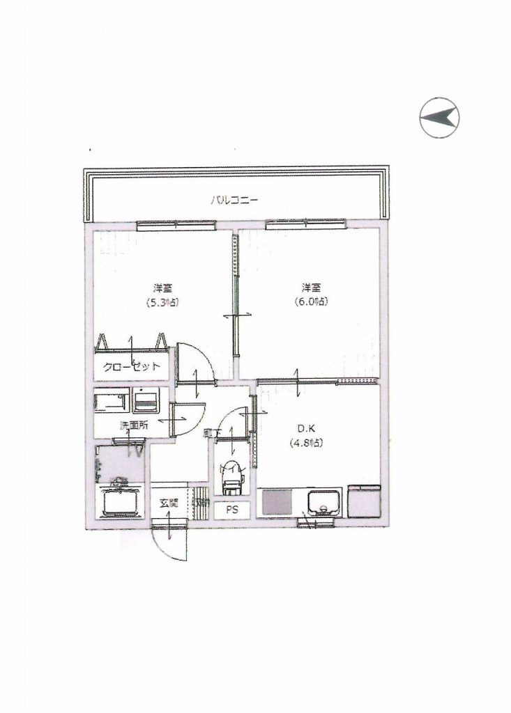 間取内容 洋室 5.3畳  洋室 6畳  DK 4.8畳
